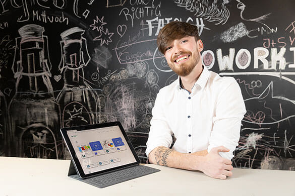 Für die gesamte Ausbildungsdauer stellen wir dir einen innovativen „Lernpartner“ zur Verfügung. Deinen Ausbildungsplan und dein Berichtsheft kannst du ganz einfach auf deinem eigenen iPad, das du von uns erhältst, bearbeiten.