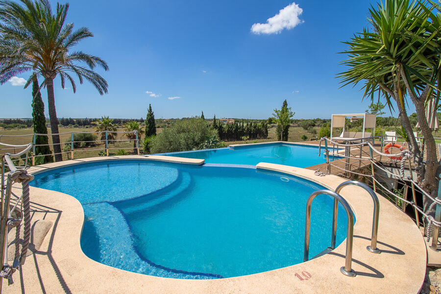Diese wunderbare Finca zeichnet sich aus durch ihre herrliche, ländlich-ruhige Lage, den fantastischen Panoramablick auf das Meer und die Landschaft sowie die Ferienvermietungs-Lizenz. Zum attraktiven Küstenort Can Picafort sind es nur wenige Autominuten.