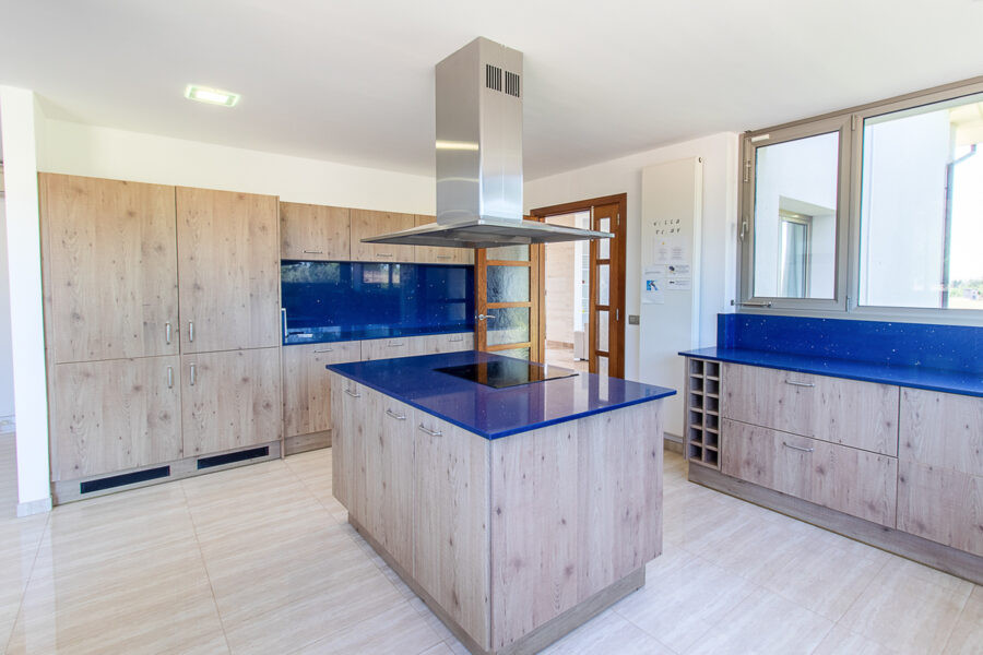 Im Erdgeschoss erwarten den Besucher eine lichtdurchflutete Eingangshalle, das Gäste-WC, der großzügig konzipierte Wohnbereich mit Blick auf den Pool, die elegante offene Küche mit anschließender Speisekammer und dem Hauswirtschaftsraum, der offene Essbereich sowie ein sehr großes Doppelschlafzimmer mit Einbauschränken, Bad en Suite und Whirlpool-Wanne. Die Garage bietet genügend Platz für 2 Autos, Motor- und Fahrräder. Der durchgehende Marmorboden verleiht dem Erdgeschoss eine großartige Eleganz.