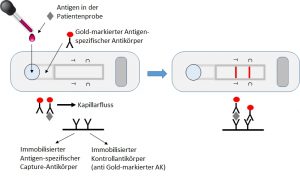 Abbildung 3: Prinzip des immunchromatographischen Schnelltests (Lateral Flow Assay)